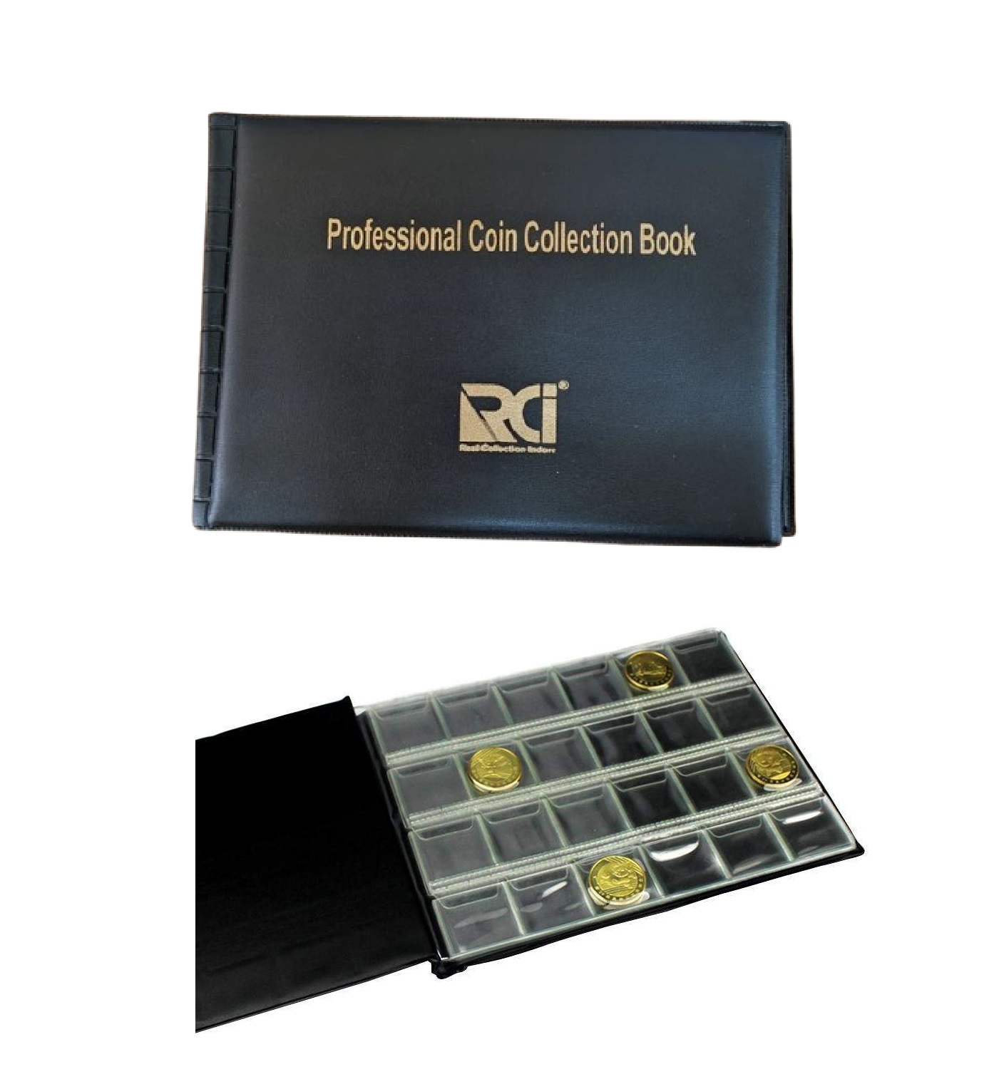 Safeguard and showcase your coin collection with the RCI 240 Pockets Coin Storage Album (Black Edition). Designed for professional collectors and hobbyists, this album features 240 transparent pockets to securely store coins of various sizes. The elegant black cover adds a premium look while ensuring durability. Crafted with archival-quality materials, it protects coins from dust, moisture, and handling damage, while offering clear visibility. Its compact, book-style design makes it convenient to carry and perfect for presenting your collection.